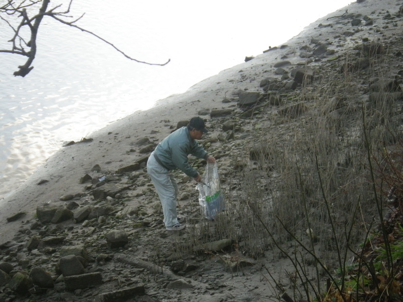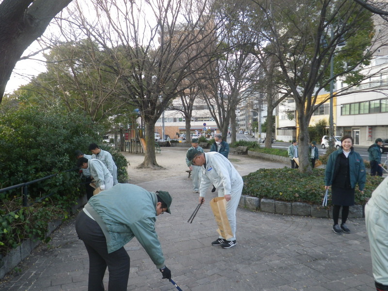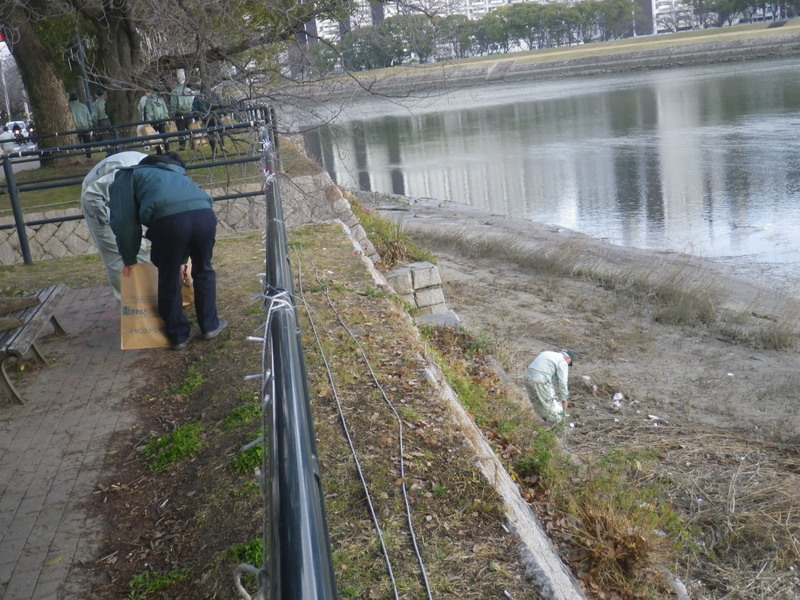 えっさえっさとゴミ拾い。ナゾに満面の笑みの人が一人…笑