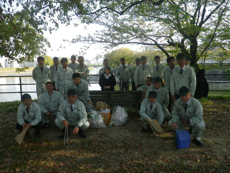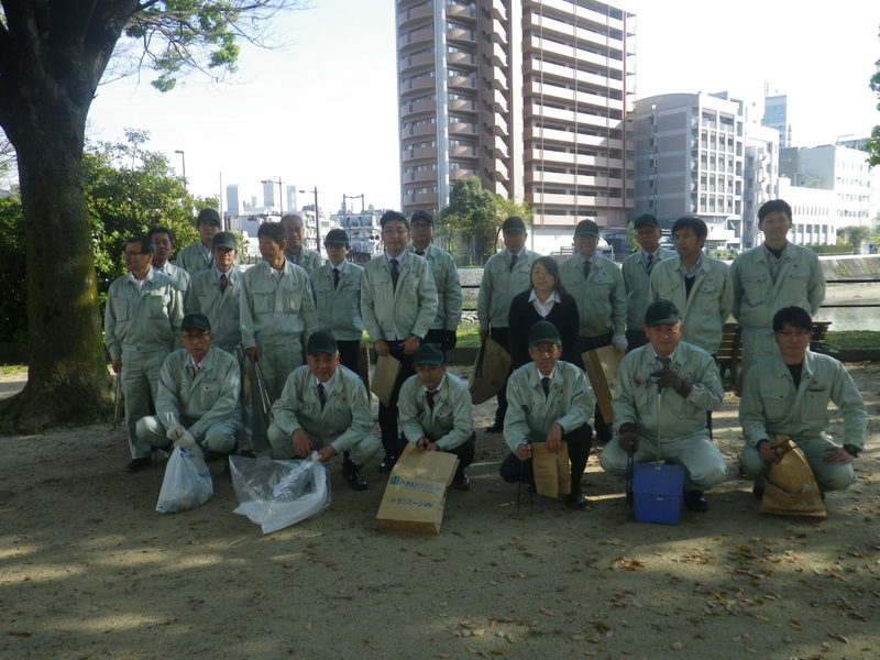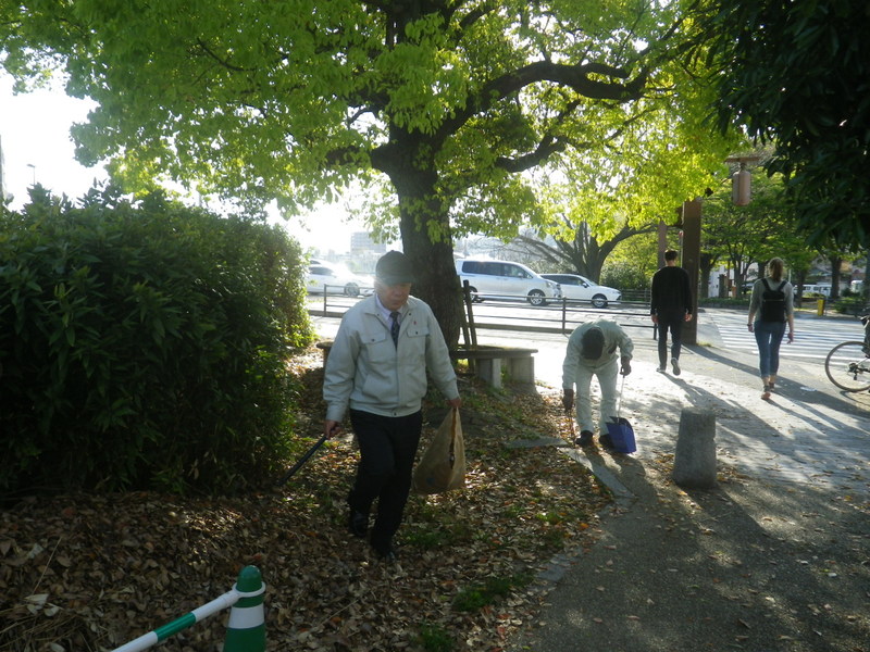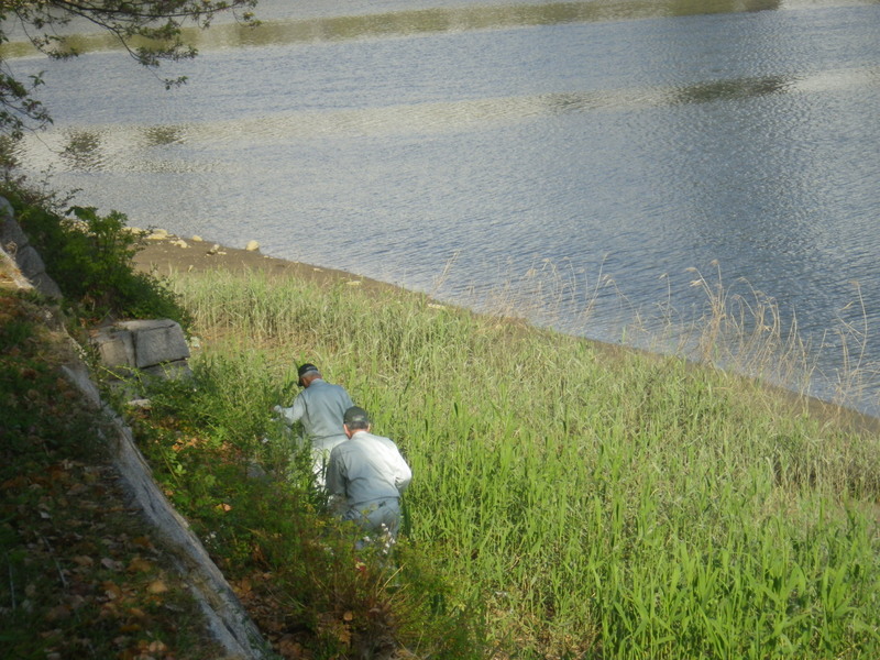 今回は2人で川岸まで。ニョキニョキ伸びた草をかき分け綺麗にお掃除。