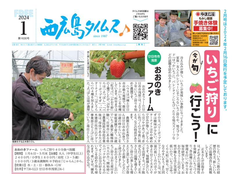 さて、表題にもある通り、2024年1月号(第1630号)の西広島タイムスに大之木ファームが掲載されました!!