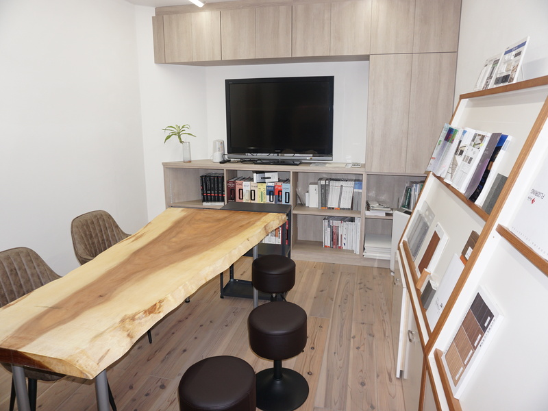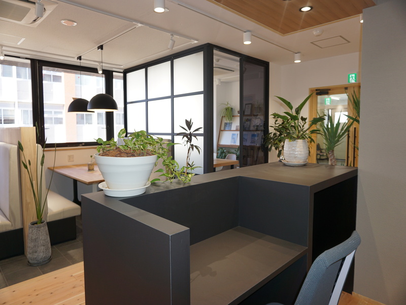 入ってすぐには、受付机や打合せテーブルがあったり~、