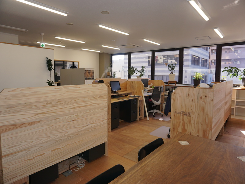 個人デスクや打合せテーブルは木材で出来ていてとっても暖かい雰囲気が感じれました!!仕事もはかどりますねq(≧▽≦q)