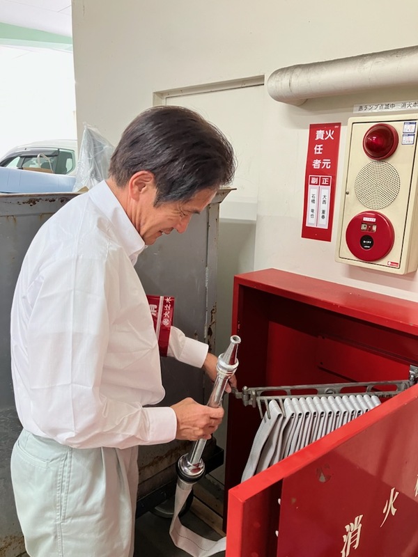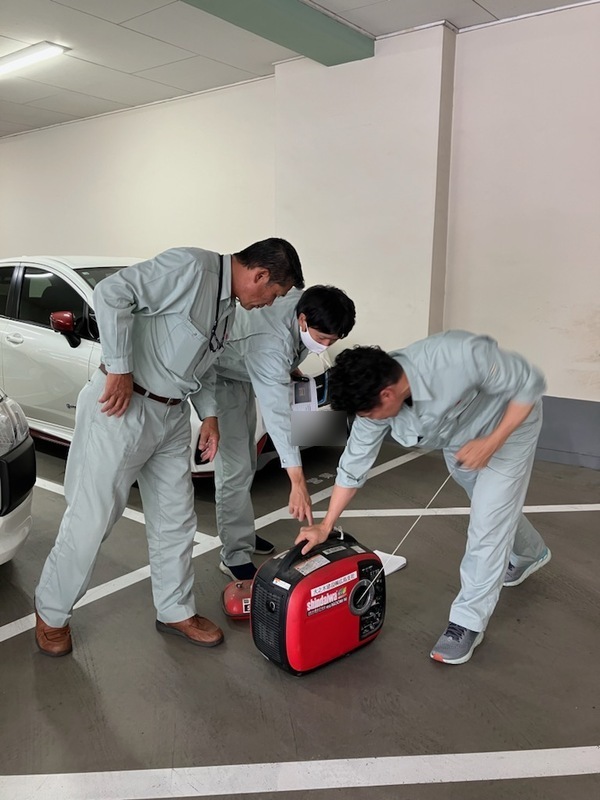 発電機の確認・食料の確認・消火栓の使い方・簡易トイレの使い方を学びました!!