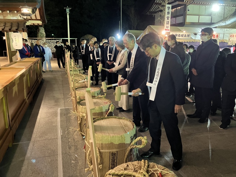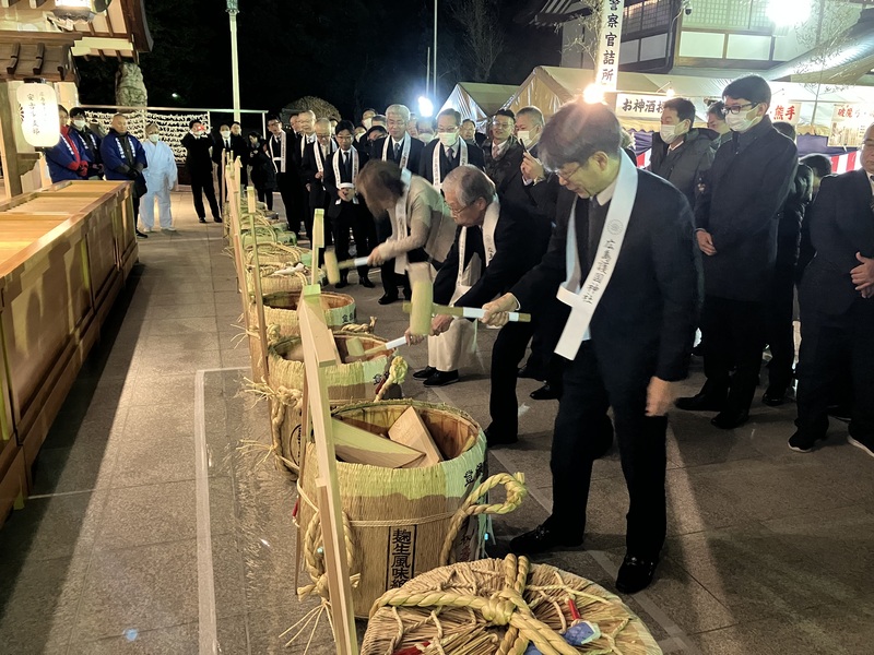2024年大晦日の午後11時、広島護国神社にて樽酒奉納奉告祭及び鏡開きを行いました✨