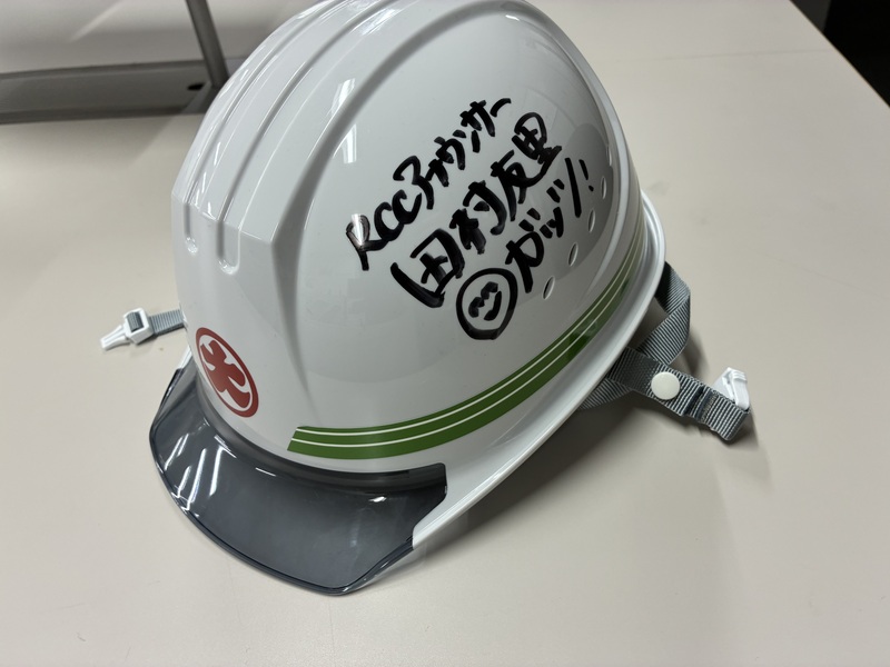 なんとなんと、最後に田村アナから大之木建設のヘルメットにサインを頂きました!!(≧∀≦)ゞ
